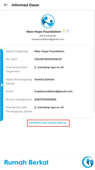 Pengajuan perubahan data anda sedang dalam proses validasi oleh admin.