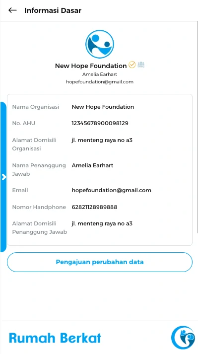 Anda dapat melihat detail Informasi dasar organisasi/perusahaan