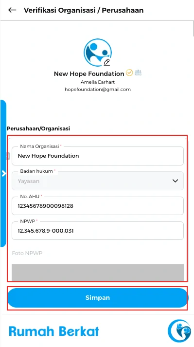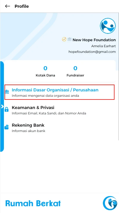 Pilih opsi “informasi dasar organisasi/perusahaan”