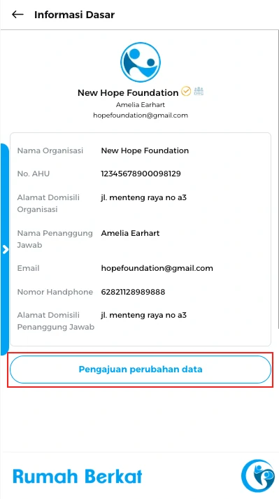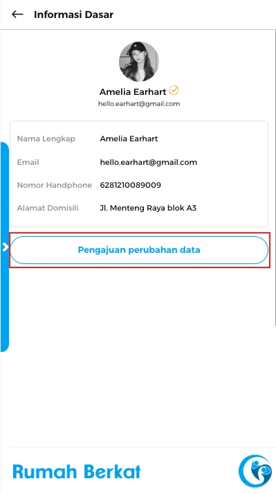 Klik button “pengajuan perubahan data”