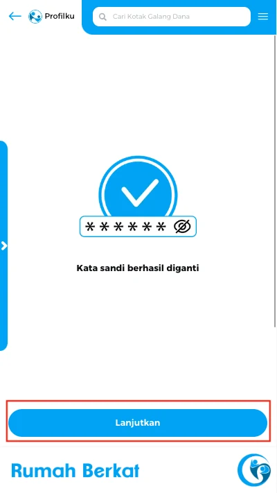 Kata sandi berhasil diubah, klik tombol “lanjutkan”