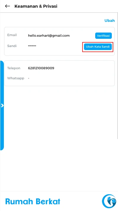 Klik tombol “ubah kata sandi”