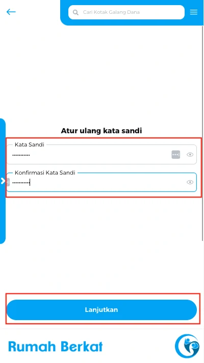 Atur ulang kata sandi anda, kemudian klik tombol “lanjutkan”