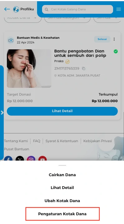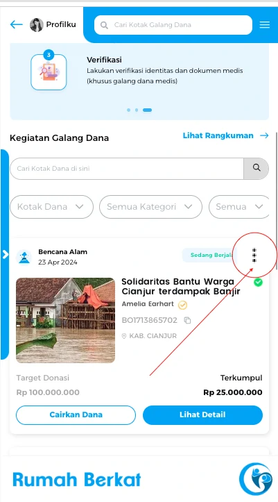 Pilih kotak dana yang ingin anda lihat riwayat pencairannya, klik tombol “titik tiga”