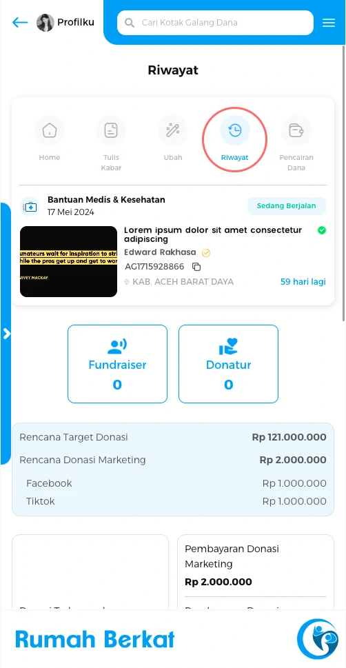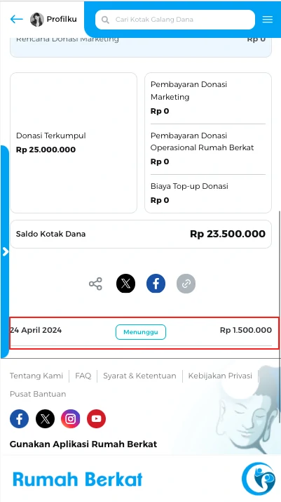 Permohonan pencairan dana anda sedang dalam proses admin. Anda akan mendapatkan notifikasi apabila pencairan dana telah berhasil disalurkan.