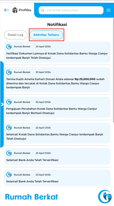 Pilih opsi “aktivitas terbaru”, anda dapat melihat informasi terkait aktivitas anda.