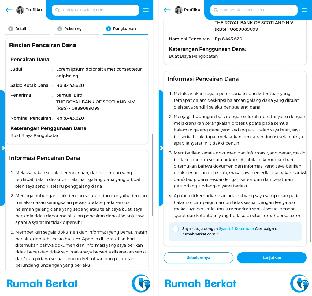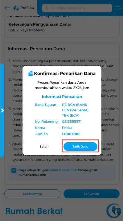 Silahkan baca ringkasan detail pencairan dana dan syarat ketentuan, centang dan klik tombol “lanjutkan”