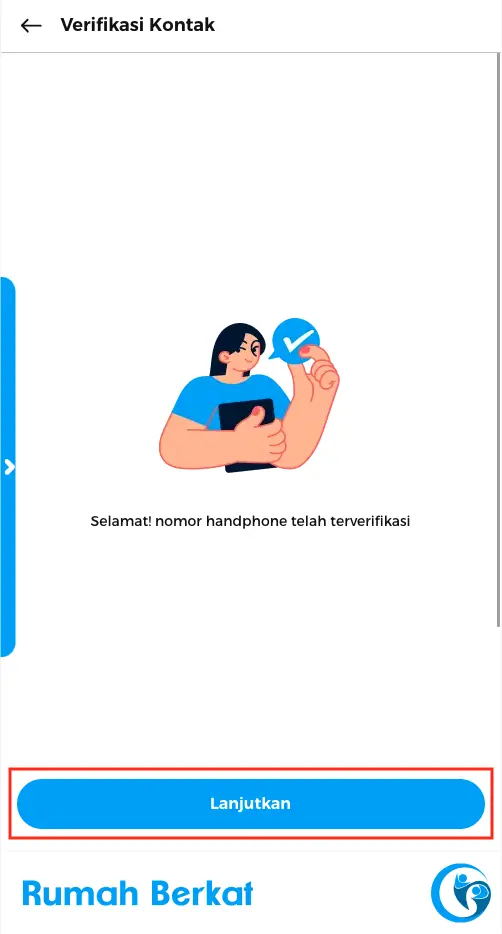 Nomor anda berhasil terverifikasi, klik tombol “lanjutkan”
