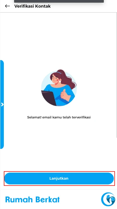 Email anda berhasil terverifikasi, klik tombol “lanjutkan”
